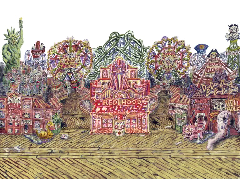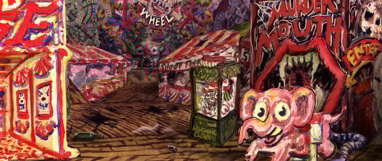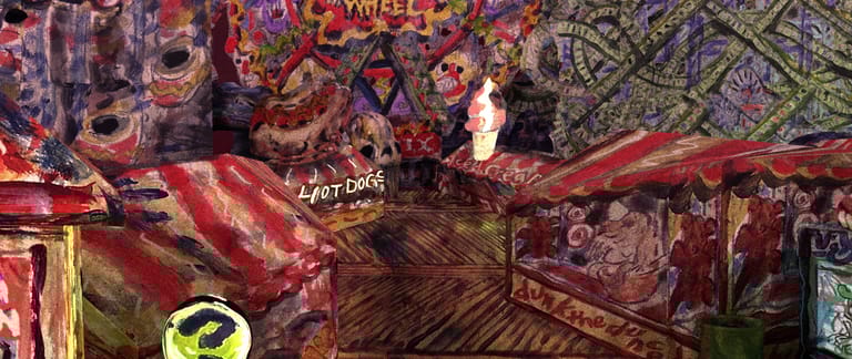 That meant not micromanaging what the artists were bringing to the table, and allowing the artists to lean into their best aesthetics. For example, we have a broken-down amusement park set that was just a 2D abstract painting of a broken-down amusement park by artist A.T. Pratt. I didn’t know how to use it as a set, but thought, let’s figure out a way to make it work. So my 3D animators cut out individual pieces of it, and turned it into a 3D diorama set. And it’s amazing.