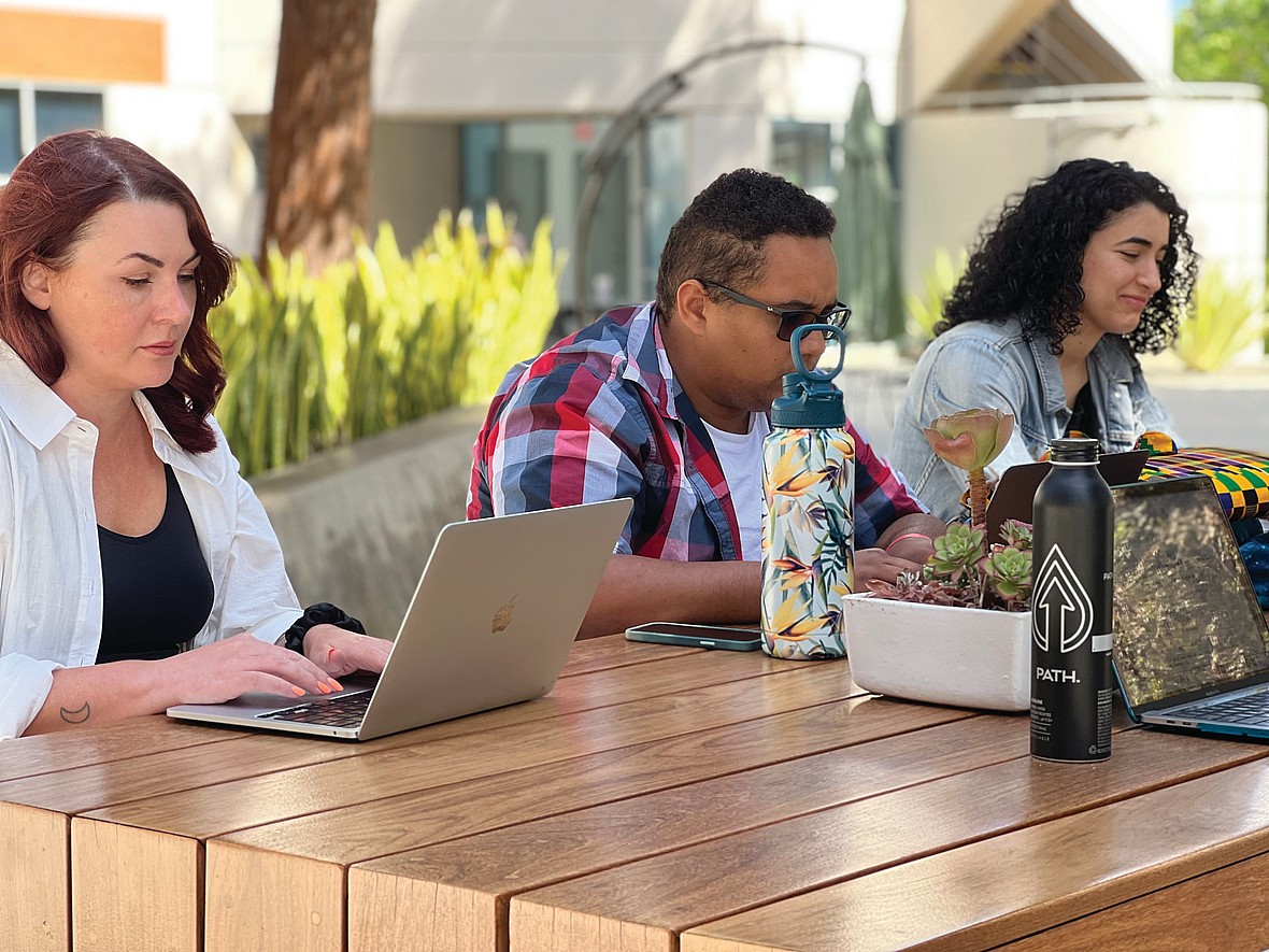 (L-R) Angela Carlyle, Ty Halton, Emily Hagopian take part in a screenwriting workshop at Antioch, one of our Best Film Schools in the U.S. and Canada. Photo by Colette Freedman, courtesy of Antioch. – Credit: C/O