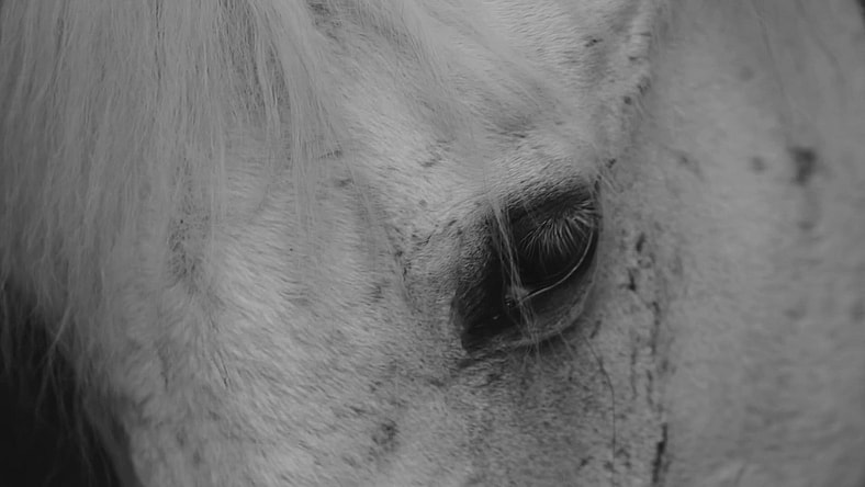 This visual progression holds conceptual significance. Branches that are severed represent a form of life taken away; once reassembled into fish shapes through human craftsmanship, they mimic animate forms, yet their regained appearance comes at the cost of their original freedom. Likewise, the horses confined in dark stables, blindfolded and restrained, embody another dimension of captivity. The imagery remains drained of color until a white horse begins to thrash and gallop; the force of its hooves and the rising intensity of its cry gradually pull color back into the frame, symbolically restoring vitality, agency, and a fragile sense of freedom.